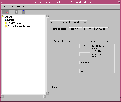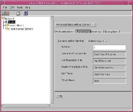 Next, you must configure an authentication service on your network. Refer to Figure 5-2, "Oracle Net8 Assistant Profile Authentication Tab".