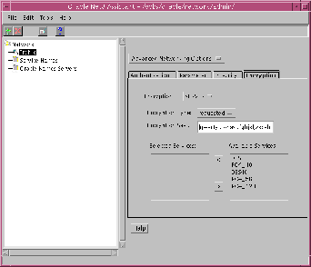 Configure Clients, and Servers, to use encryption as follows. Refer to Figure 6-2, "Oracle Net8 Assistant Profile Folder Encryption Tab".