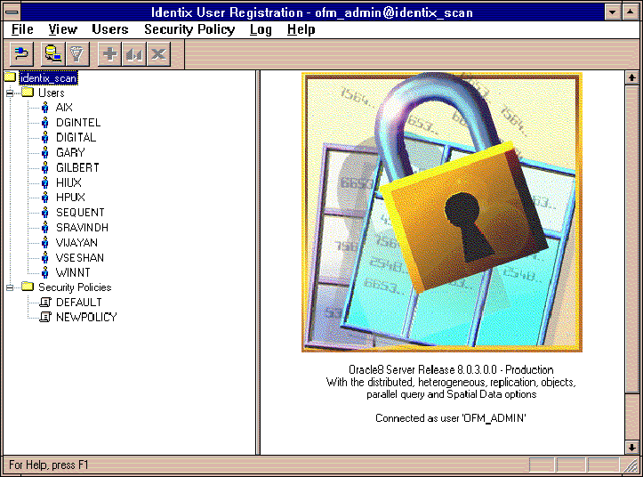 The Oracle Biometric Authentication Service uses the Identix Biometric Authentication Adapter to provide tamper-proof biometric authentication of users using secret-key MD5 hashing, centralized management of biometrically identified users, and centralized management of those database servers that authenticate biometrically identified users.