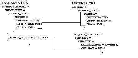 INVENTORYDB.WORLD = (DESCRIPTION = (ADDRESS_LIST = (ADDRESS = (PROTOCOL = TCP) (Host = INVENTORY) (Port = 1521) ) ) (CONNECT_DATA = (SID = ORCL) ) )