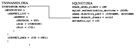 TRACE_LEVEL_CLIENT = OFF <---set this to 16 if tracing is required sqlnet.authentication_services = (NONE) names.directory_path = (TNSNAMES, HOSTNAME) names.default_domain = world automatic_ipc = off