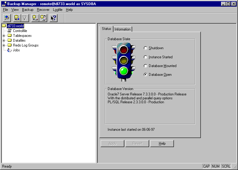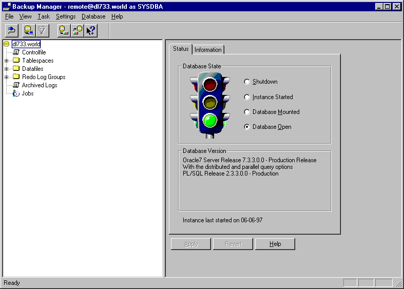 Backup Manager using the Oracle8 Recovery Manager subsystem