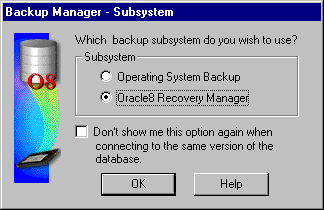 After selecting Oracle8 Recovery Manager from the Subsystem