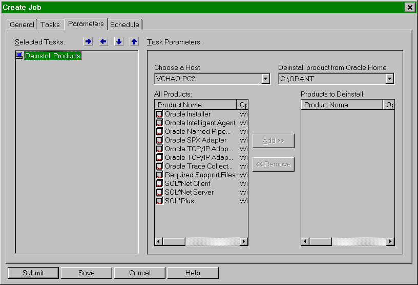 Deinstall Product Task directs the Oracle Installer to deinstall
