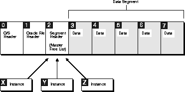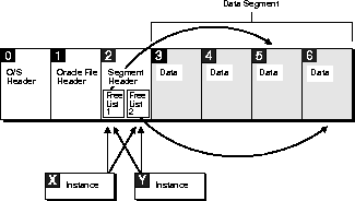 If no free list groups are allocated, however, the segment header block of a file points to the process free lists. Without free list groups, every instance must read the segment header block in order to access the free lists.