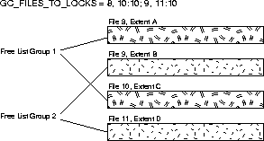 If each extent in the table is in a separate datafile, you can use the GC_FILES_TO_LOCKS parameter to allocate specific ranges of PCM locks to each extent, so that each set of PCM locks is associated with only one group of free lists.
