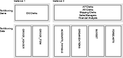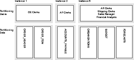 In the case study it is also clear that the Accounts Payable data is written exclusively by AP clerks. This data and set of users can also be very effectively partitioned onto a separate instance, as shown in Figure 13-3.