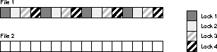 File 1 has hashed PCM locking with 4 locks. On file 2, fine
