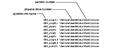 For example, with the SETLINKS utility, you can create a symbolic link called OPS_log1t1 to the second logical partition on the second physical disk: