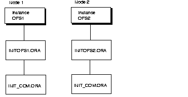 Certain initialization parameters are critical at database creation or affect certain database operations. These parameters must have the same value for every instance in an Oracle Parallel Server specified in each INIT_COM.ORA file for each instance. For example, the values of DB_BLOCK_SIZE and CONTROL_FILES must be identical for every instance. Other parameters can have different values for different instances; for example, INIT_SQL_FILES can have any value because it is ignored except when the database is created.
