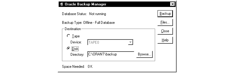 For example, you would click Files from the Oracle Backup Manager dialog box: