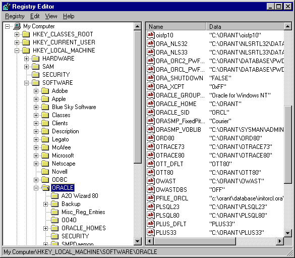 Oracle Web Publishing Assistant registry values are located under the key HKEY_LOCAL_MACHINE\SOFTWARE\ORACLE