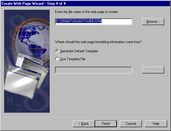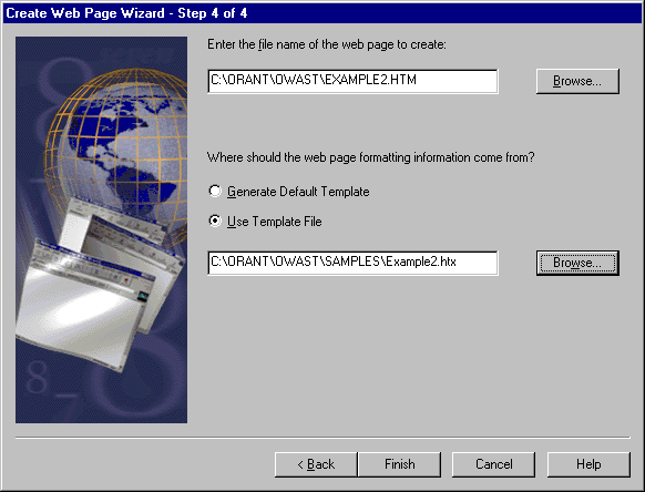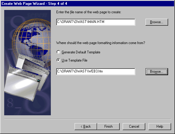 Select Use Template File. Navigate to ORANT\OWAST\SAMPLES\EXAMPLE3.HTX.