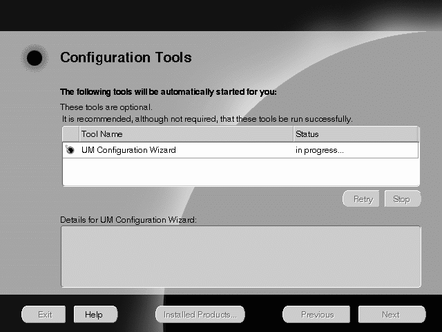 This table gives you information about the Configuration Assistant screen buttons. Click Next to proceed through the steps to configure Oracle Unified Messaging 2.1.2.