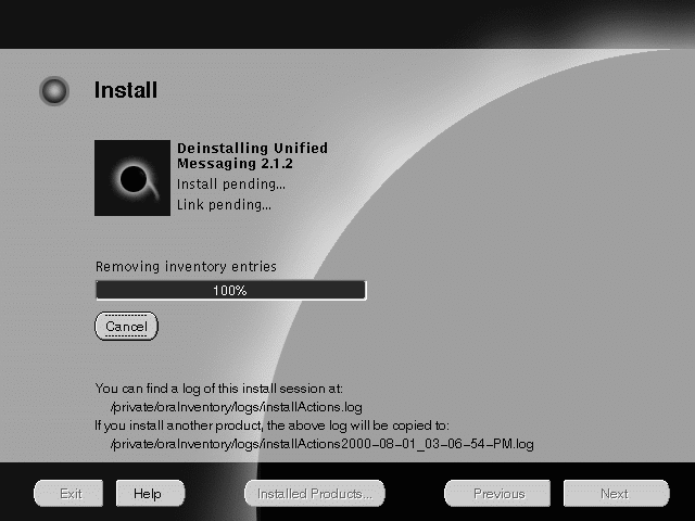 This screen shows the progress of your installation. To stop installation, click Cancel.