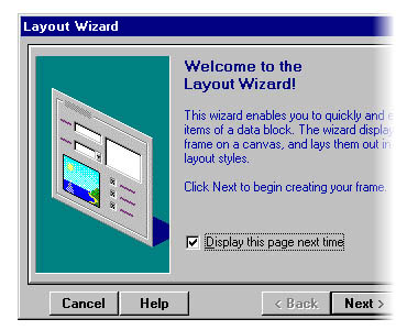 The Layout Wizard enables you to quickly lay out the items of a data block. The wizard displays the items in a frame on a canvas and lays them out in one of several layout styles, after which you can manually alter the layout to your own specifications if desired.