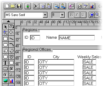After you create the OFFICE detail data block, use the Layout Wizard to layout its database items in frames. Be sure to select the same canvas you selected for the REGION block.