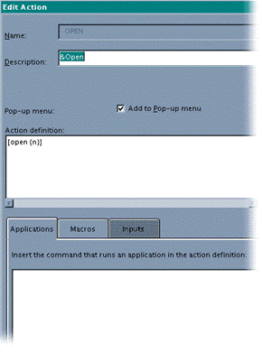 For example, you may wish to include different options for the Open action than what are provided by default.