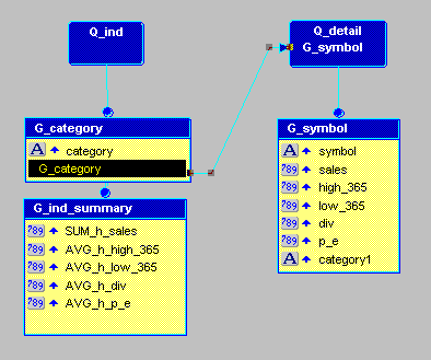 SELECT ic.category, SUM (h.sales), AVG (h.high_365), AVG (h.low_365), AVG (h.div), AVG (h.p_e) FROM stock_history h,indcat ic