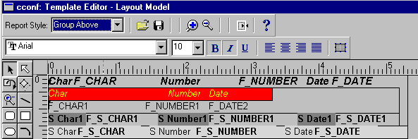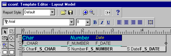 The changes you have made to the template so far have affected objects in the margin. The changes you will make to the default attributes will be applied to the objects in the body of the report such as frames, field labels, and fields.