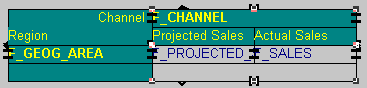 The report that you create in this exercise will present the monthly regional and channel projected and actual sales for each product division. Your Express query will have two measures, and each measure will be dimensioned by product, time, geographic area, and channel.