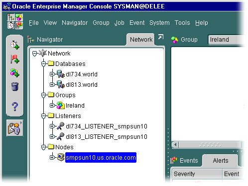 graphical tree view of target nodes and services, and the objects they contain,
