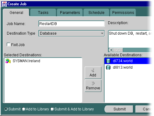 group at the same time. A target can belong to more than one group, so you can create groups to address different requirements, such as routine restarting of a group of databases. |