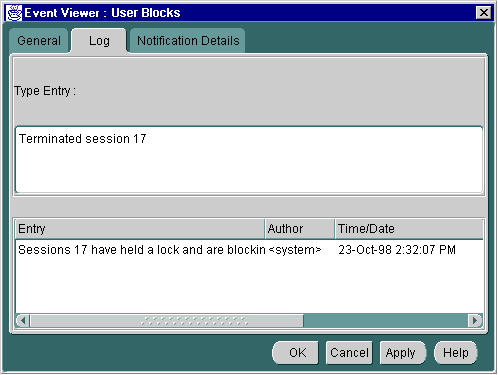Each job and event includes a log for administrator entries, in addition to an automatically-generated job and event history.