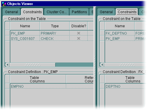 To see a side-by-side display of both object definitions, click the View Objects button on the toolbar.