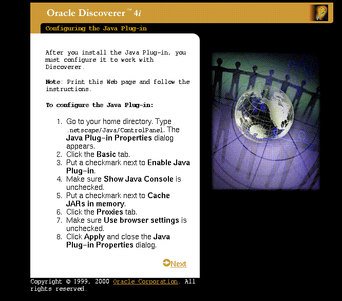 If you are using a Netscape browser and depending on the software already installed on the client machine, you might be prompted to download and install the Java Plug-in. If you are not prompted to download and install the Java Plug-in, skip the next step.