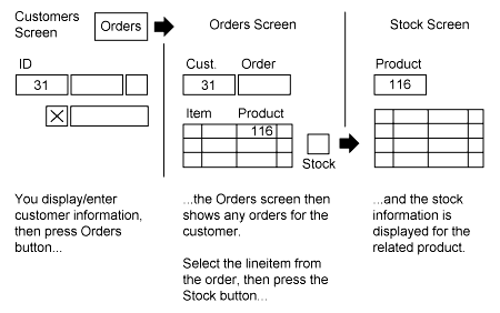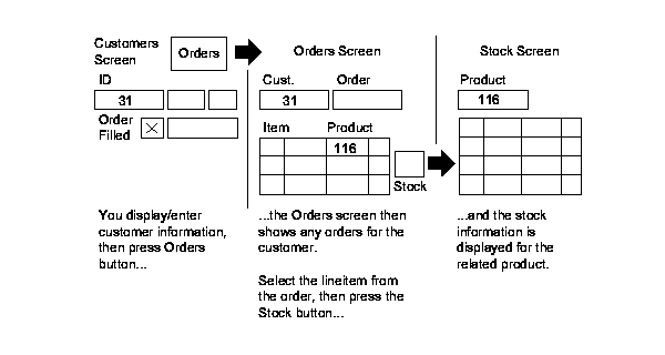 There are two types of blocks: a data block, which serves as a link between the datasource and the user, and a control block, which is not associated with a datasource. Each data block can enable the user to view and access data from one table in the datasource. Blocks can be single-record blocks, which means that they show one row of data at a time, or multi-record blocks, which enable users to see many rows of data at once. All of the fields in Figure 2-4 are in single-record blocks.
