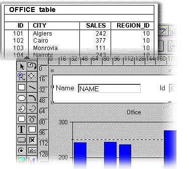 With Forms Developer, there are two methods for embedding displays in forms. You can use the Form Builder's Chart Wizard or you can build a chart manually.