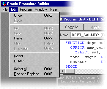 The Program Unit editor provides you with full text editing capabilities for entering and editing your program unit source code.