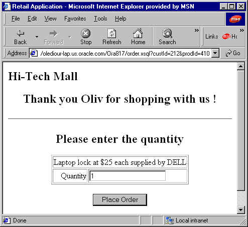 XSQL Script Example 4: Enter a Quantity -- order.xsql