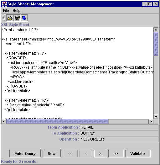 Using this utility you can browse the actual table, Stylesheets, in which the stylesheets are stored. These stylesheets are used by the AQ Broker-Transformer to process the documents it received. See Figure 13-7.