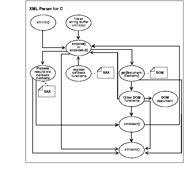 Figure 21-1 illustrates the XML Parser for C functionality as follows: