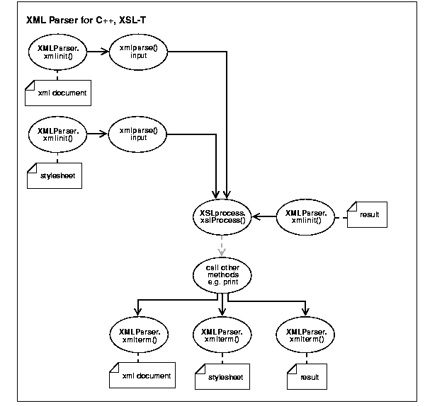 Figure 22-2 shows the XML Parser for C++ XSLT functionality for the DOM interface.