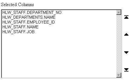 In the first left Column list, choose HLW_STAFF.DEPARTMENT_NO.