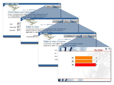 Wizards Oracle Portal includes many wizards to speed up and simplify the development process. Wizards go through tasks step-by-step, prompting for information in a way that is easy to understand. Midway through a task, a wizard may display a Finish button. Clicking this button completes the task, with Oracle Portal supplying intelligent default values for the remaining steps. It is easy to change these defaults later, if necessary. Look out for error messages that are displayed at the top of the wizardyou will not be able to continue until you have resolved the problem that is causing the error. |