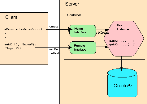 The client application itself does not access the bean directly. Rather, the container generates a server-side object known as the EJBObject that serves as a server-side proxy for the bean. The EJBObject receives the messages from the client, and thus the container can interpose its own processing before the messages are sent to the bean implementation.