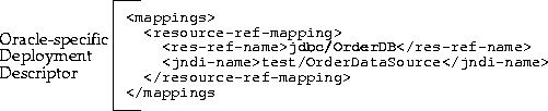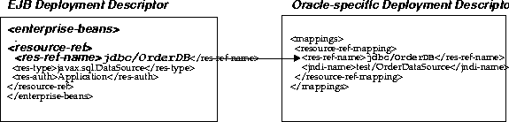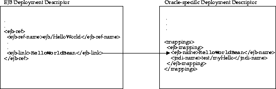without specifying the actual name. These names are defined in the deployment descriptor and are linked to the actual names within the Oracle-specific deployment descriptor.