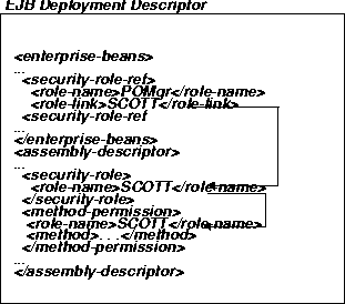 <enterprise-beans> ... <security-role-ref> <role-name>POMgr</role-name> <role-link>SCOTT</role-link> </security-role-ref> </enterprise-beans>