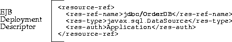 javax.sql.DataSource db; java.sql.Connection conn; . . . db = (javax.sql.DataSource) initCtx.lookup("java:comp/env/jdbc/OrderDB"); conn = db.getConnection();