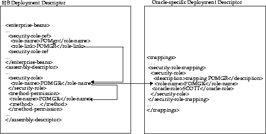 <mappings> <security-role-mapping> <security-role> <description>POMGR role mapping</description> <role-name>POMGR</role-name> </security-role> <oracle-role>SCOTT</oracle-role> </security-role-mapping> </mappings>
