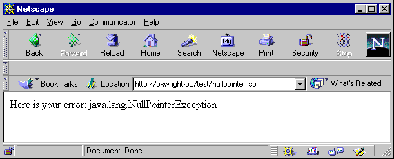 The following example, nullpointer.jsp