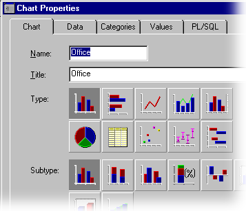 After you specify the query, you need to pick a chart type. There are over fifty predefined chart types to choose from. The Chart property sheet allows you to change many chart properties.