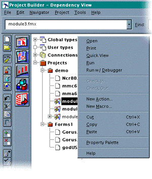 In addition to the standard toolbar and menu commands, you can use special pop-up menus to add the commands you consider most useful to each type defined in your project.
