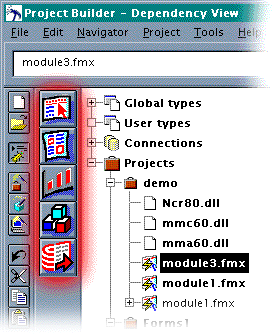 Project Builder also provides the Launcher, a customizable toolbar to which you can add all the tools you need to edit your project files - even third-party tools.
