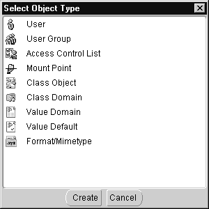 Oracle iFS Manager offers two ways to create new objects. To create a new object, you can: