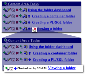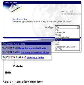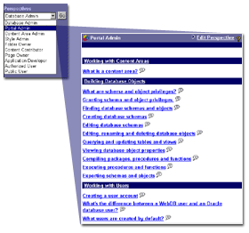 and groups can view the item and their level of access. Even after their content is uploaded and stored in the database, it still doesn't leave their control and responsibility. Contributors continue to own and maintain it. For example, content management tasks such as uploading a modified document version, moving or deleting the content, changing the publish date or expiration period, and adding a sub-item are all within their realm. The content is always up-to-date and instantly shared with other teams, regardless of location. Gone are the days of multiple or outdated versions of the same document. Oracle Portal guarantees a single source of truth. All Types of Content Displayed in a Single View Content contributors with the appropriate privileges can publish a wide variety of content. With Oracle Portal, it is easy to display different types of information or items in a single view. Using the Item Wizard, contributors can simply upload any of the default item types such as files, folder links, images, Java applications, PL/SQL code, text, URLs, application components, and Zip files for bulk loading directly into the Oracle database for display in the content area. Additionally, Oracle Portal supports item attributes beyond the defaults. For example, if you want to add an item for a new product offering on an e-commerce site, you would probably want the cost and quantity attributes defined along with the item's name and description. To fulfill such requirements, Oracle Portal lets you create custom item and folder types by adding attributes or procedures to extend the basic item and folder type functionality. All You (and Your Users) Need Is a Browser Oracle Portal's browser-based interface lets your users access information, and even add and edit items within a browser. Since most of your users are already familiar with the browser interface and controls, they can perform many of these tasks intuitively by pointing and clicking hypertext links. When you are logged on as a content area administrator, all administrative functions such as securing the content area, managing and deploying content areas from a central location, and monitoring performance are also done in a browser. You can also use the Navigator to quickly access content area objects. In short, Oracle Portal makes accessing, creating, and managing Web content easier than ever while still providing a rich set of content management features. Controlling Document Collaboration In addition to being